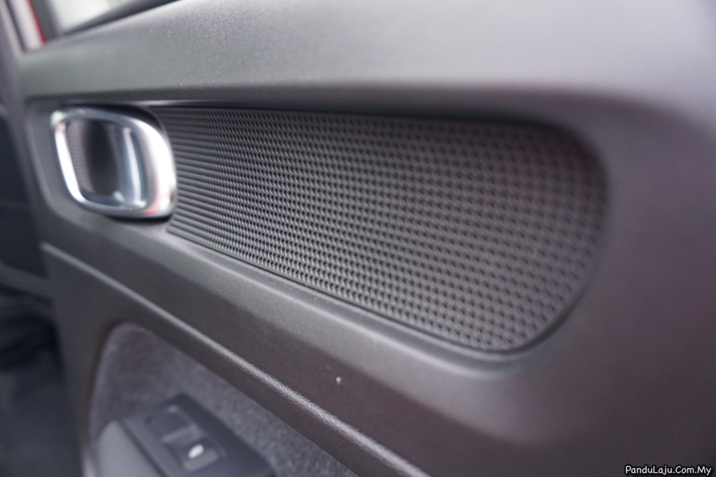 Bahagian sisi pintu menawarkan ruang simpanan agak besar menerusi pemindahan pembesar suara dan meletakkan subwufer pada papan pemuka dengan bukaan ruang udara yang pertama seumpamanya. Ruang di tepi pintu mampu menyimpan komputer riba sehingga 15-inci, peranti tablet dan dua botol air.