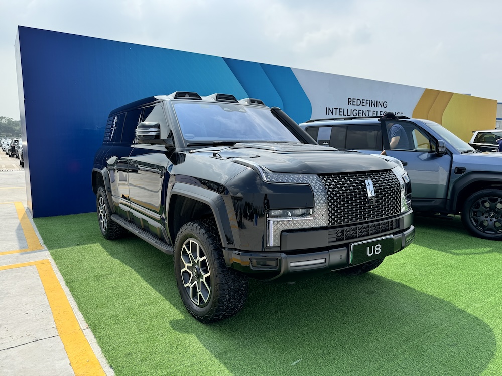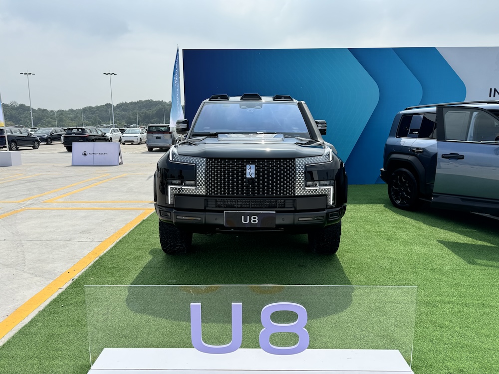 Asasnya, sesi pandu uji di kilang itu dibuat di kawasan lot parkir luas dengan empat model jenama berlainan bawah BYD, termasuk Yangwang U8. SUV itu ditempatkan bersama SUV BAO 5.