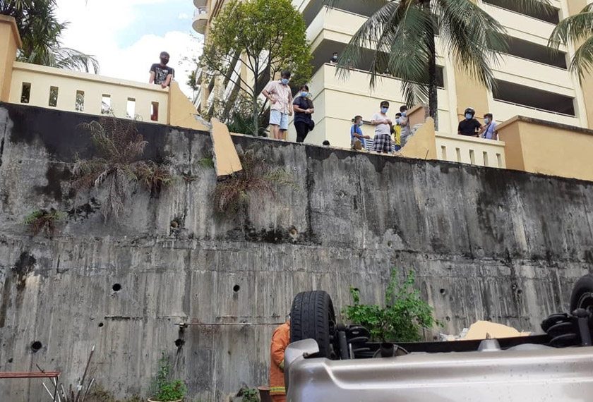 SEORANG pejalan kaki maut akibat dilanggar dan dihempap sebuah kereta yang terjunam dari tingkat satu sebuah kondominium di Green Lane, Georgetown, Pulau Pinang.