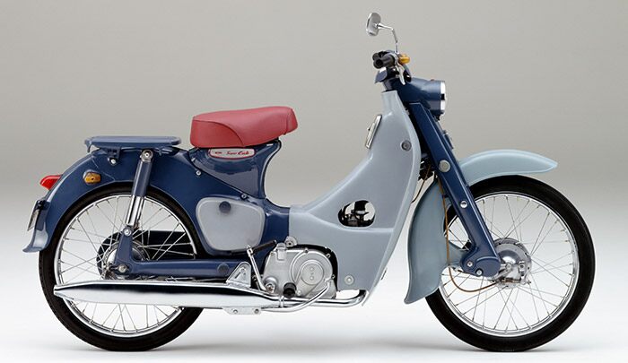 Super Cub C100 (1958) sebenar dipacu enjin 4-lejang silinder tunggal 49cc dengan kuasa maksimum 4.5hp, manakala sistem transmisi jenis rotari 3-kelajuan.