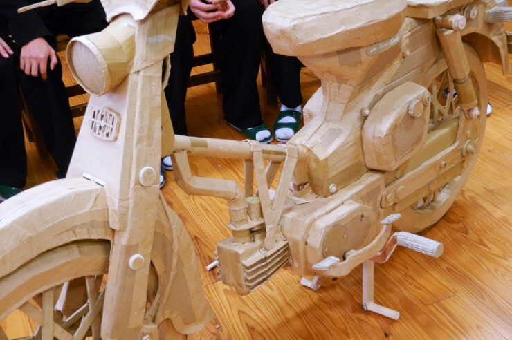 SEPASUKAN pelajar dari Jepun menghasilkan Honda Super Cub C100 (1958) menggunakan 50 keping kadbod bersama beberapa material lain. Enam pelajar itu, yang menuntut Sekolah Tinggi Teknik Yawatahama di wilayah Shikoku, selatan Jepun, berkongsi rekacipta tersebut di laman web Super Cub Fansite.