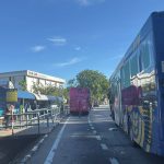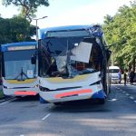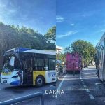 Impak pelanggaran menyebabkan bas pertama menggelongsor ke depan dan melanggar besi pengadang jalan serta menghimpit mangsa yang sedang berjalan kaki menunggu giliran menaiki bas.