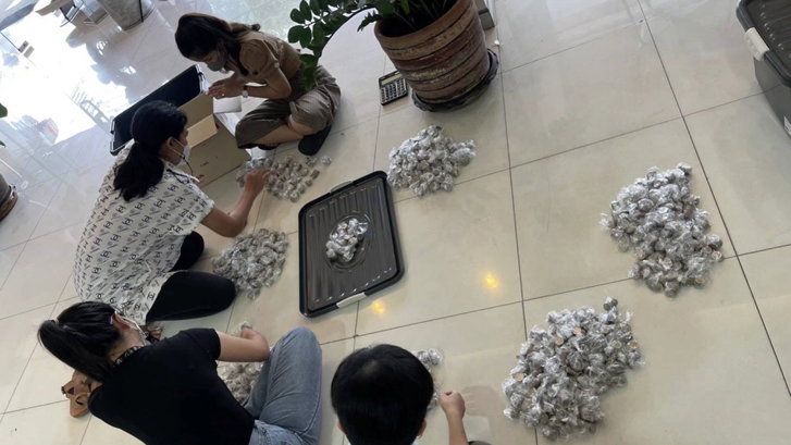 Kisah itu dilaporkan berlaku di Akhom Charoen Honda Motorcycles Chon Buri dengan sekeping foto menunjukkan kakitangan premis itu duduk bersila atas lantai sambil mengira wang syiling.