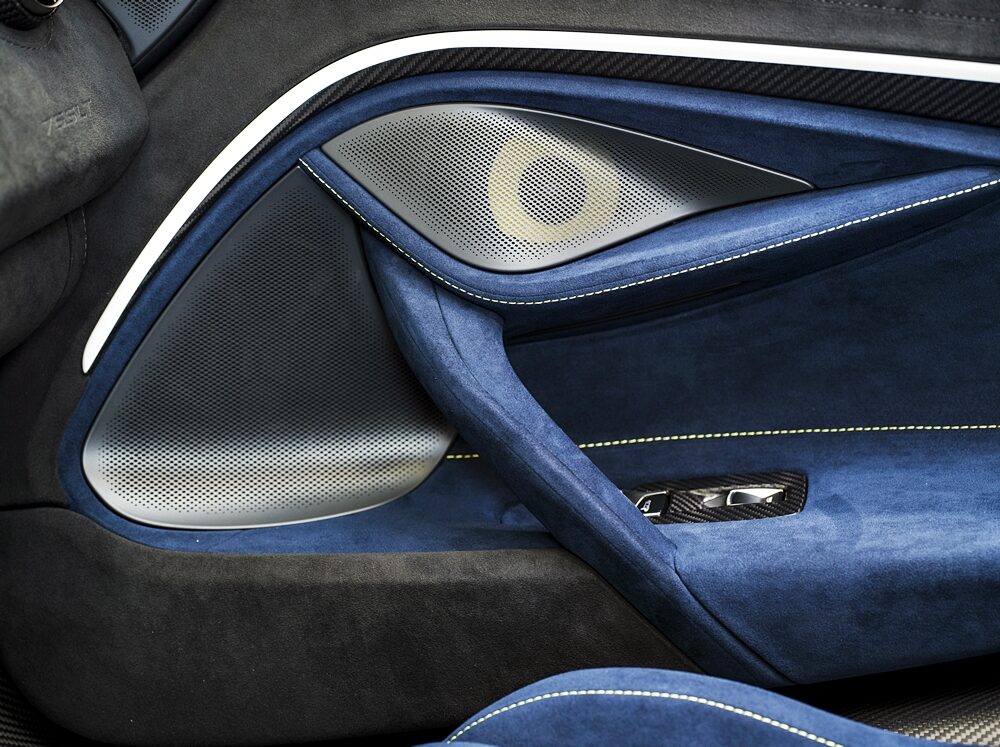 Penyandar kepala mendapat sulaman LN4 dan balutan Alcantara Navy Blue dan sulaman Napier turut digunakan pada panel pintu dan kemasan papan pemuka. Selain kemasan yang dapat dilihat, Norris turut bermain dengan kemasan tersorok melalui bendera Union Jack pada alang pintu.