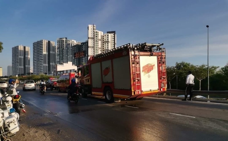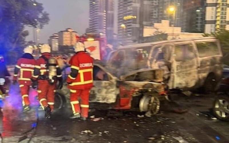 Setibanya Pasukan Keluaran Operasi (PKO) di tempat kejadian didapati berlaku kebakaran membabitkan sebuah kereta jenis BMW terbakar 90 peratus, sebuah van pekerja kilang jenis Nissan terbakar 90 peratus, sebuah Perodua Myvi terbakar 60 peratus dan sebuah Honda City tidak terbakar akibat kemalangan jalan raya.