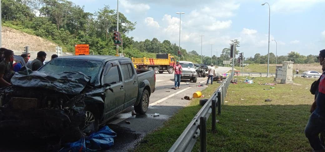 Menurut polis, MPV dinaiki keluarga itu sedang membelok masuk ke simpang kanan selepas lampu isyarat hijau sebelum mendapati kenderaan di sebelah kanan dari arah bertentangan berhenti secara tiba-tiba. Kemudian, trak pikap yang datang dari arah depan dipercayai tidak berhenti dan bertembung dengan MPV mangsa.