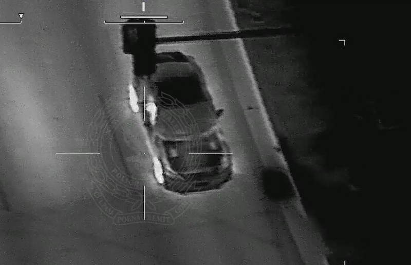 Subaru dipandu lelaki muda berusia 23 tahun itu dikesan helikopster peronda polis di kawasan pinggar bandar, Barat Sydney. Aksi memandu laju itu dirakam kamera terma (suhu) dari pesawat tersebut yang mengekori suspek hingga ditahan polis peronda lebuh raya.