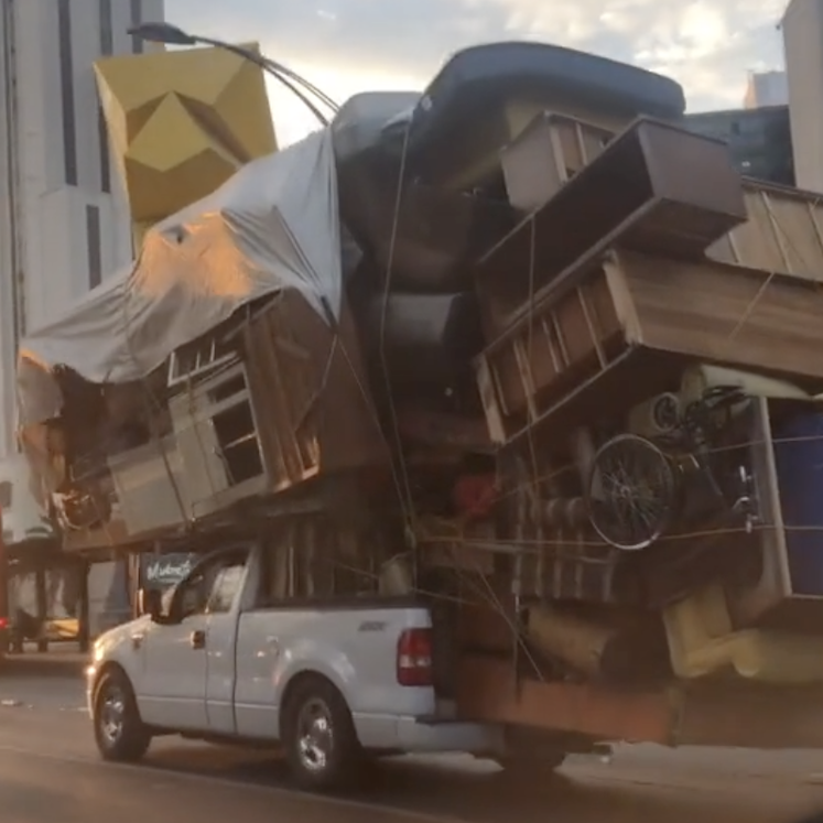 Kejadian pelik tapi benar itu dilaporkan berlaku di ibu kota Mexico dan sempat dikongsikan @lapipadelapaz dalam akaun TikTok miliknya. Apa ditunjukkan adalah rakaman sebuah trak pikap jenis Ford F-Series dengan muatan perabot dan pelbagai barangan rumah lain yang menimbun tinggi di ruang kargo belakang.