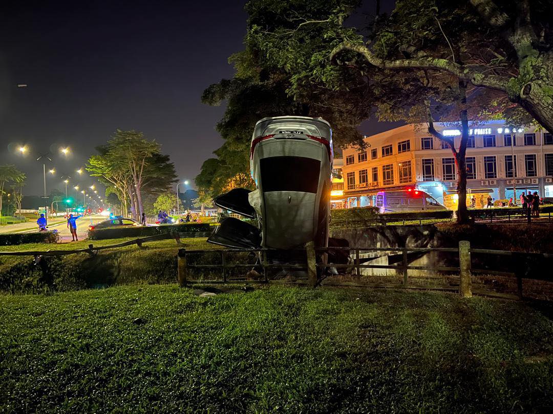 SEORANG pemandu Toyota Vios maut, manakala rakan penumpang parah selepas kereta dinaiki terbabas di Bulatan Persiaran Indah, Bukit Indah di Johor, awal pagi semalam.