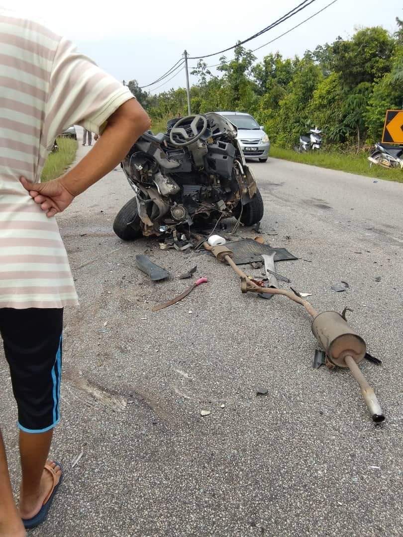 Di tempat kejadian, kereta mangsa hilang kawalan dan masuk ke laluan trak pikap dalam keadaan melintang. Disebabkan jarak terlalu dekat, mangsa tidak sempat mengelak dan melanggar bahagian depan trak pikap hingga terputus dua.