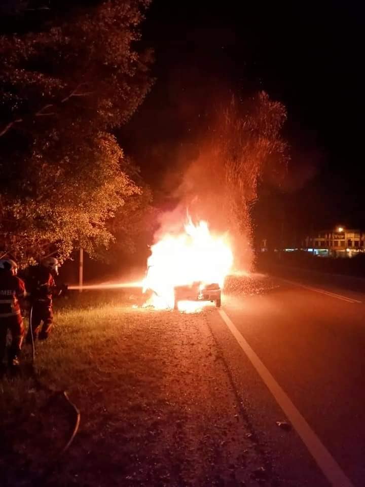 SEORANG lelaki rentung apabila Perodua Kancil dipandunya terbakar dalam insiden di Jalan Shapadu Kampung Sungai Pinang, Klang, Selangor, awal pagi tadi.