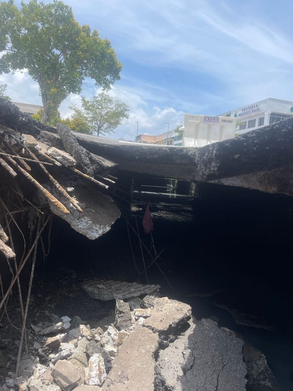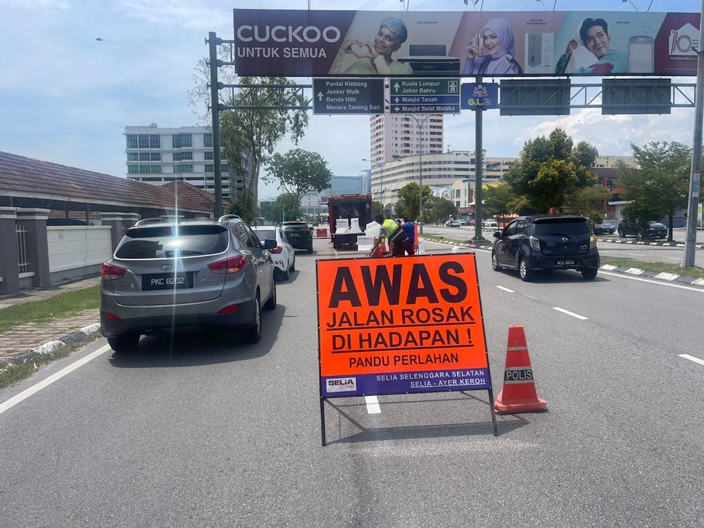 Pengarah JKR Melaka, Ir Mohamad Salzeli Mokhtar berkata, pembetung yang pecah di jalan itu telah mangakibatkan insiden lubang selebar satu meter, panjang 3.5 meter, dan mempunyai kedalaman 1.7 meter.