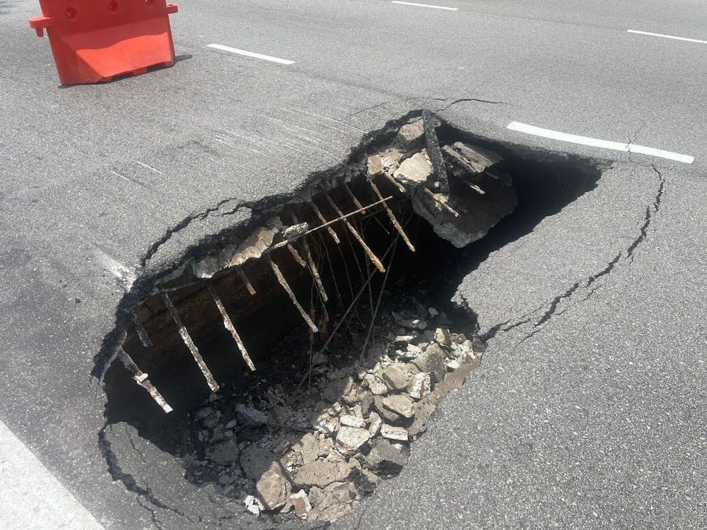 Setakat ini, terdapat dua penunggang motosikal yang cedera ketika cuba mengelak daripada terjunam ke dalam lubang benam tersebut.