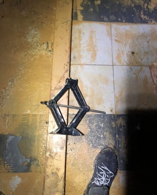 Rupanya dia menggunakan alatan jek yang biasanya dipakai untuk menukar tayar pancit.