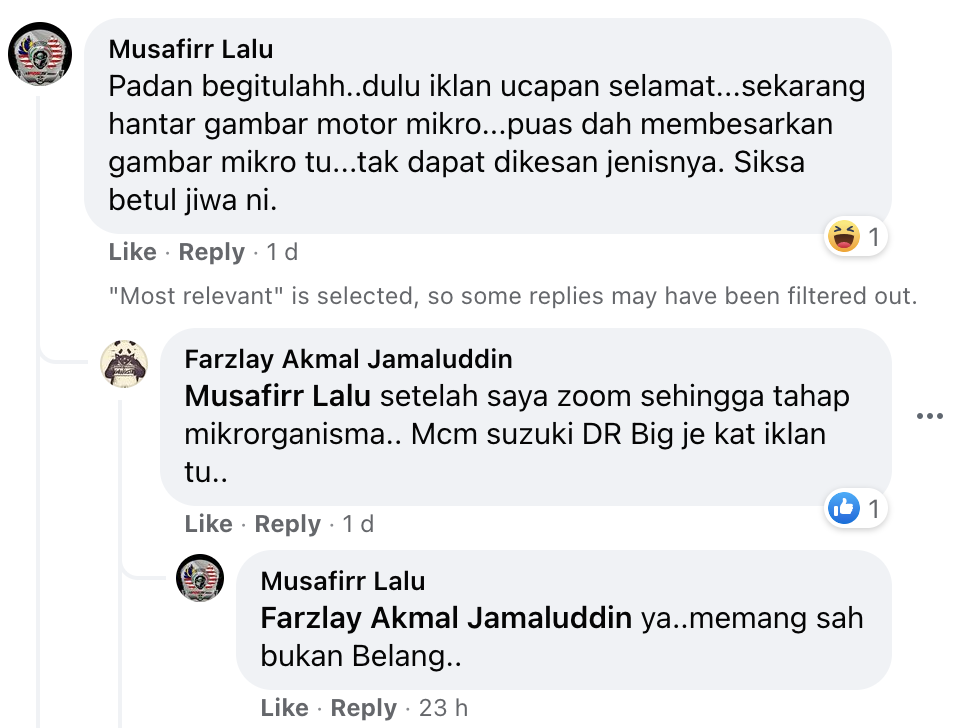 Di bawah ini kami kongsikan komen-komen menarik, lucu dan bernas seperti dapat dibaca di laman Facebook Suzuki Malaysia. Sepatutnya kalau sudah dedahkan foto acah, cepat-cepatlah lancar. Kalau terlambat, terlepas pula peminat setia yang terpaksa beli model lain.