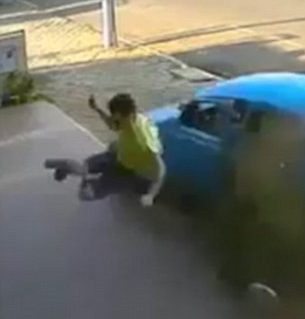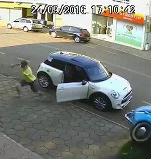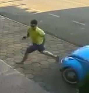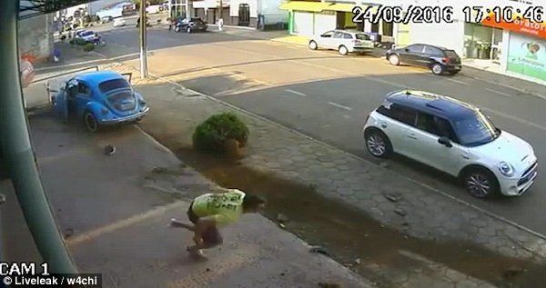 Nasib baik, dia berjaya mengelak daripada dirempuh Beetle tersebut dan mendarat selamat sebelum berlari menyelamatkan diri dengan meninggalkan tempat kejadian. Pemandu Beetle pula dilihat keluar dari keretanya tanpa sebarang kecederaan.