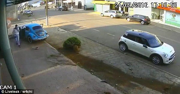 SEORANG pemandu Mini Cooper nyaris maut dirempuh sebuah Volkswagen Beetle yang meluru laju ke arah keretanya. Insiden berlaku di bandar Cruz Machado dekat selatan Brazil pada 24 September lalu jam 5.10 petang yang sempat dirakamkan kamera litar tertutup (CCTV) di situ.