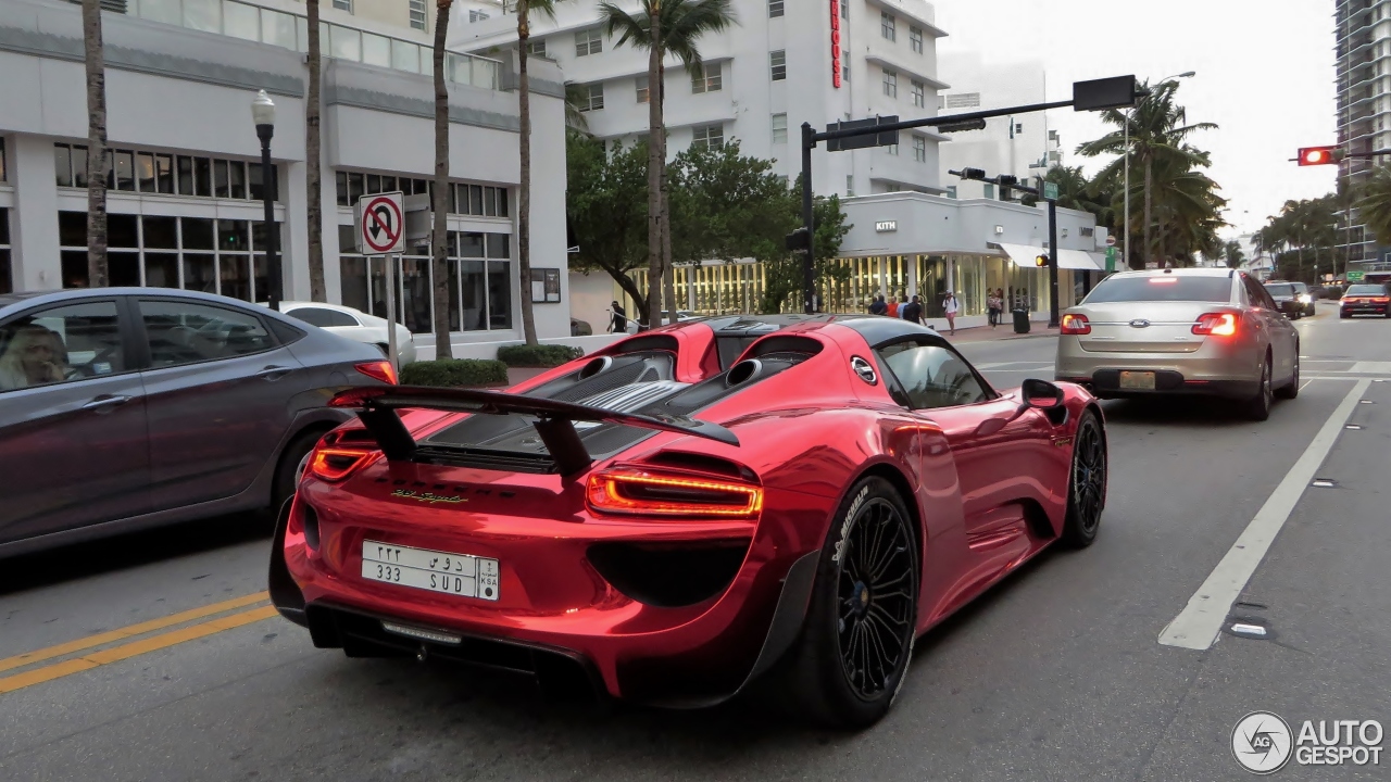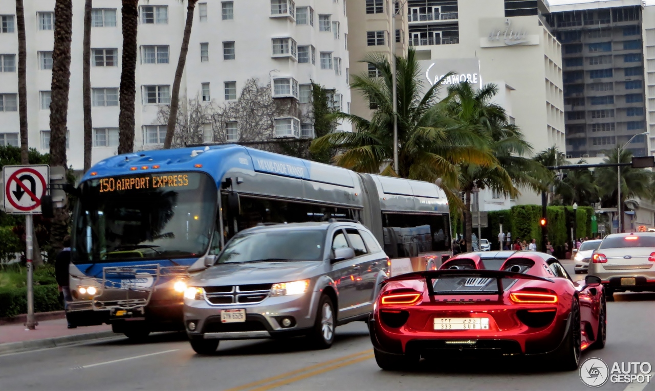 DI PANTAI Miami, kelibat pelbagai supercar menjalar atas jalan sudah jadi pemandangan normal, tetapi Porsche 918 Spyder dengan Weissach Pack ini bukan kereta sport biasa-biasa kerana ia mampu membuatkan sesiapa saja memalingkan muka kerana mahu melihatnya.