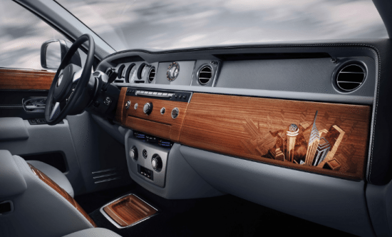 Walnut pusar kerap digunakan Rolls-Royce selama berdekad lama, tetapi pembeli boleh memilih apa yang disukai mereka. Paten kayu yang rumit seperti model Ghost Majestic Horse (2014) di atas dibina dengan menggabungkan pelbagai jenis kayu seperti Walnut Amerika, anegre bercorak, mapel, dan lapisan oak gelap dan wasap.