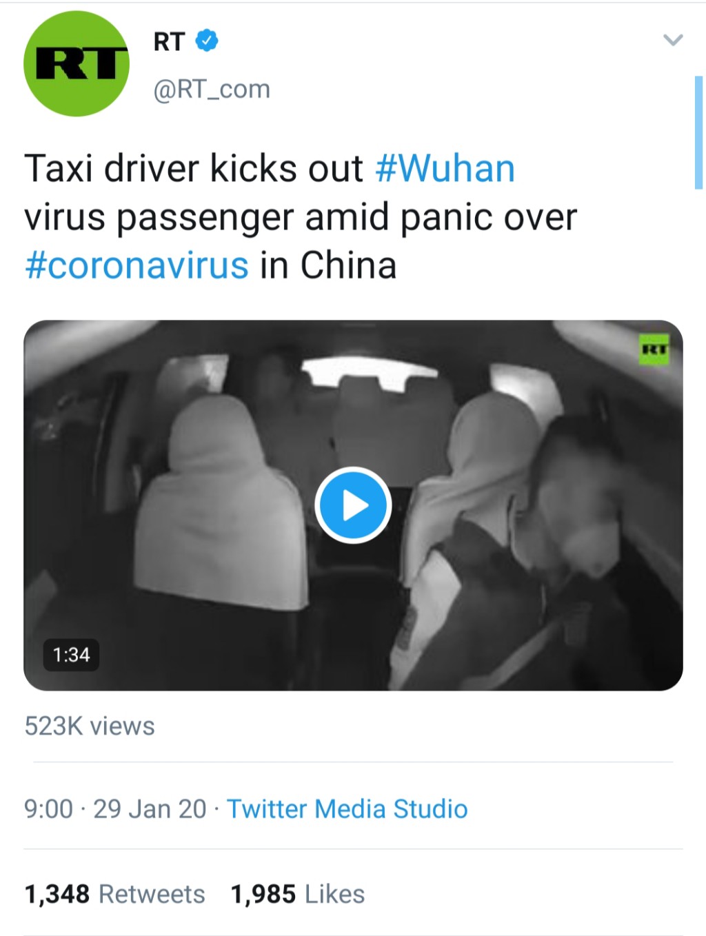 Video berdurasi 1 minit 34 saat itu dikongsikan pemilik akaun Twitter, RT_com. Apa yang berlaku disebabkan rasa panik pemandu tersebut mengenai wabak koronavirus yang semakin menular di China.