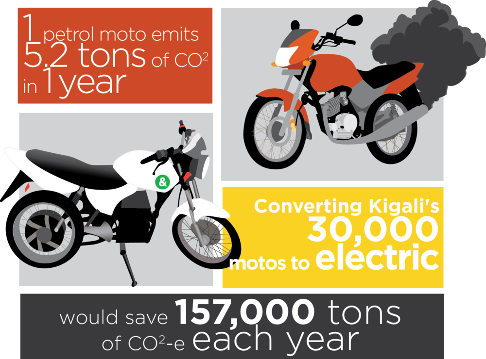 Menurut syarikat teksi motor Rwanda, Nyirishema, peralihan medium kenderaan dari motosikal biasa kepada e-motosikal adalah sebahagian strategi Kerajaan untuk menukar jaringan pengangkutan awam negara kepada elektrik dalam usaha merintis teknologi dan industri e-dagang di Afrika.
