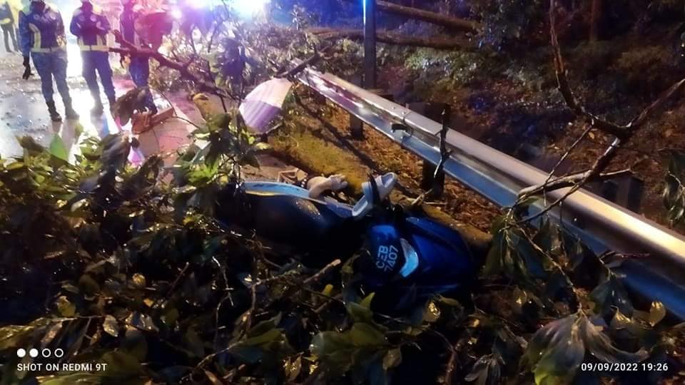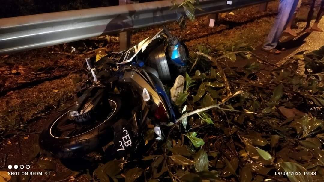 SEORANG penunggang motosikal maut akibat dihempap pokok tumbang di KM67.4 Lebuhraya Pantai Timur (LPT) menghala Kuantan, semalam.