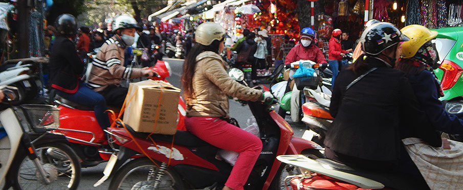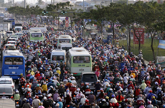 Rasanya ada kewajaran peratura tersebut dikuatkuasakan di Vietnam. Tengoklah gambar di bawah ini dan bayangkan kalau semua penunggang diwajibkan pasang lampu sepanjang hari. Mahu berpinau juga mata dibuatnya.