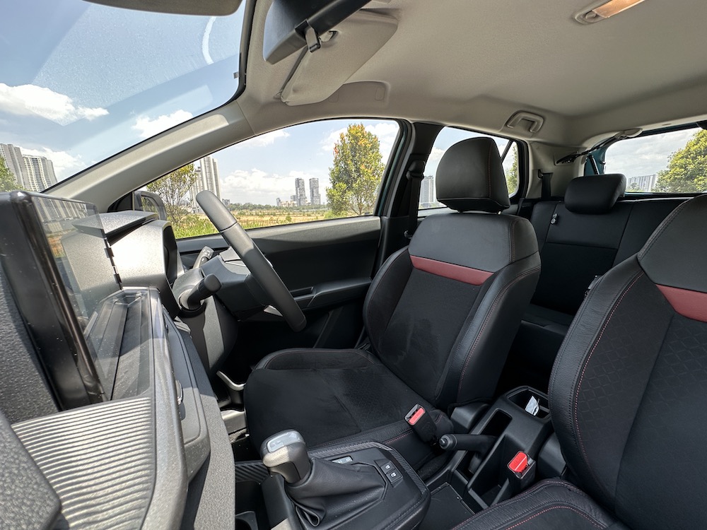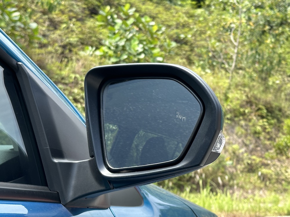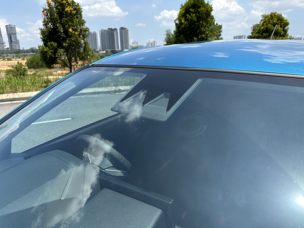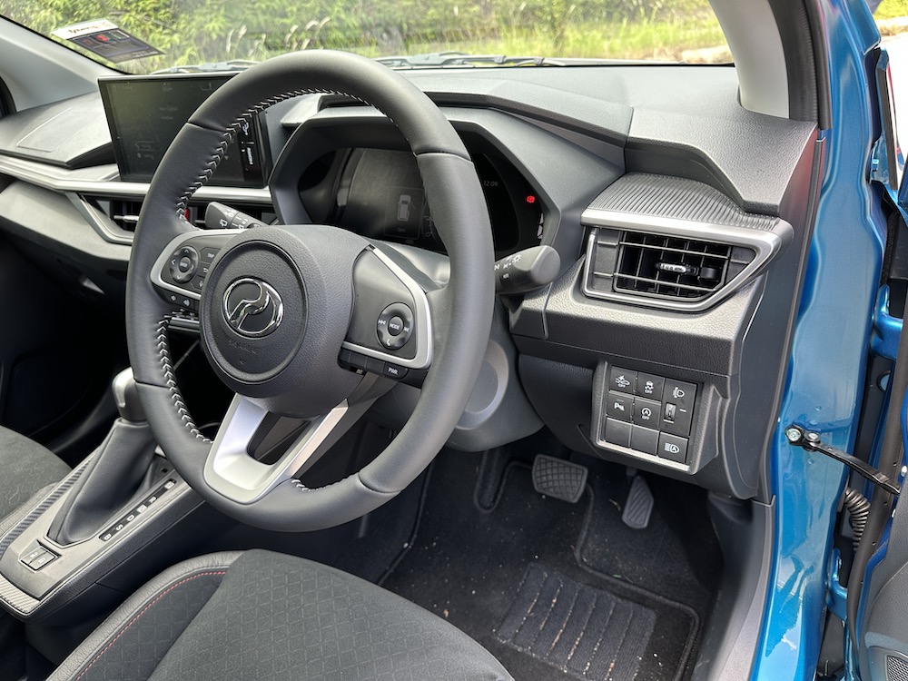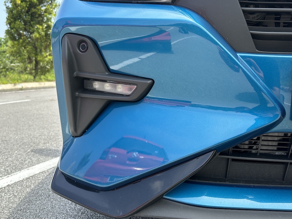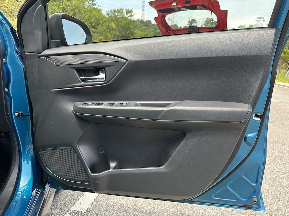 Cermin sisi tiada lampu signal belok LED, sebaliknya diletakkan pada fender (lihat bulatan dalam foto atas kiri). Cermin sisi Axia X juga boleh dilipat, tetapi secara manual sahaja dan tiada butang boleh laras elektrik seperti AV.