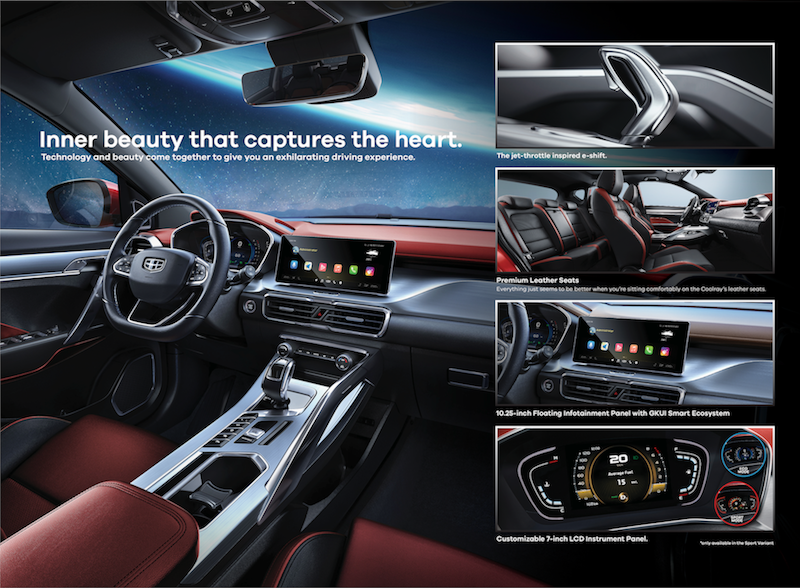 Antara sebab Filipina menjadi destinasi pertama Asean untuk Coolray adalah kenderaan negara itu menggunakan pemanduan sebelah kiri (LHD). Jadi model dari China boleh dibawa masuk terus dalam unit import (CBU) tanpa melibatkan sebarang perubahan teknikal.