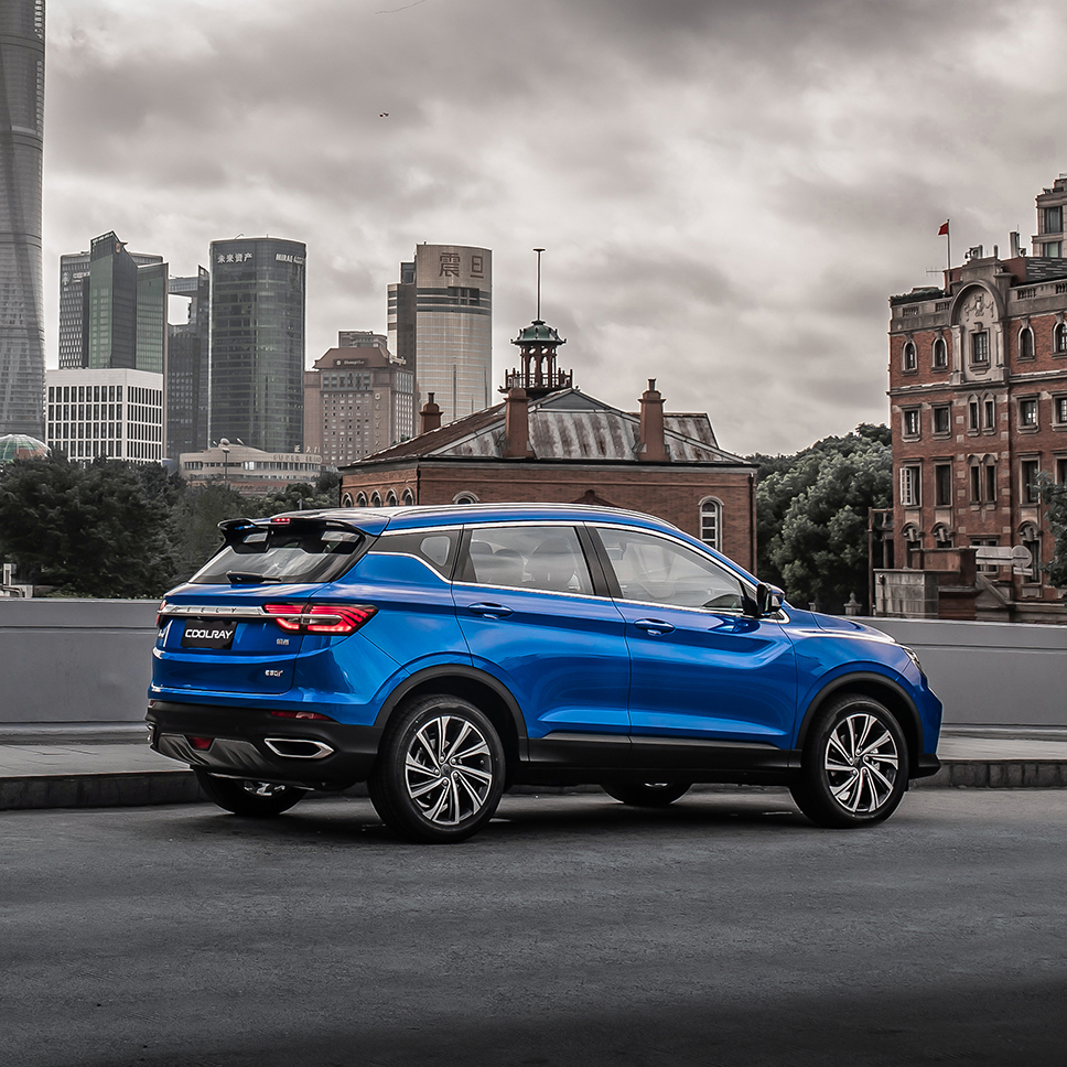 Perhatikan bahagian bumbung, rel bumbung Coolray diwarnakan hitam, sebaliknya X50 dicatkan perak. Rekaan rim kedua-dua model sama, dan begitu juga postur badan lain.