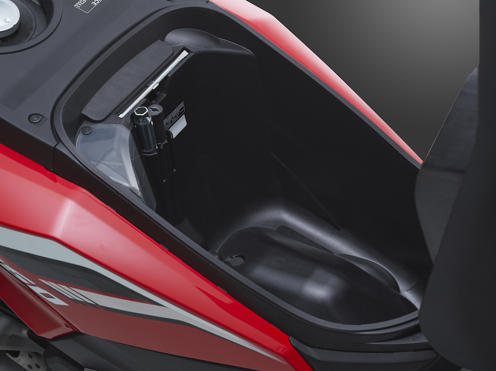 - Kapasiti tangki petrol kekal sama, manakala ruang simpanan bawah pelana kekal 18 liter.