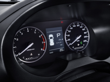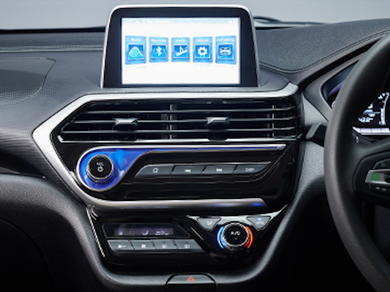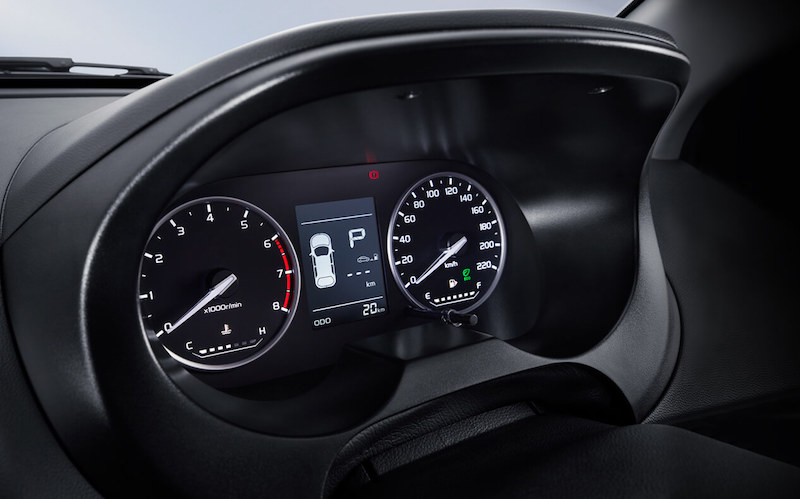 Konsol tengah papan pemuka mengetengahkan rekabentuk berkotak yang diletakkan unit infotainment jenis apung, diposisikan atas dua ventilator penyaman udara. Kluster instrumen memaparkan spidometer dan takometer serta skrin digital multi-info kecil ditenga. Tombol gear agak oldskool dan perlu diubah.