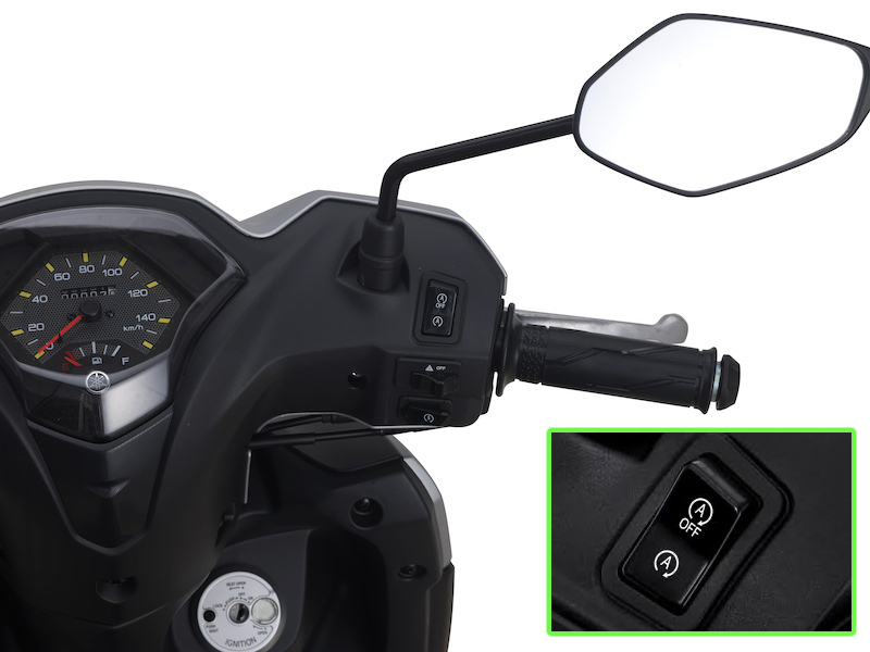 - Apabila berhenti, indikator sistem henti-mula akan berkelip pada panel meter. Untuk menghidupkan semula enjin, cukup saja dengan memulaskan terotel dan skuter akan bergerak seperti biasa.