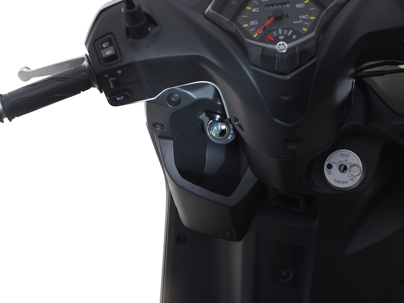 Kedua-dua skuter menggunakan sistem kunci konvensional 4-dalam-1. Ego Gear diberikan soket pengecas peranti pintar (foto atas, kiri).