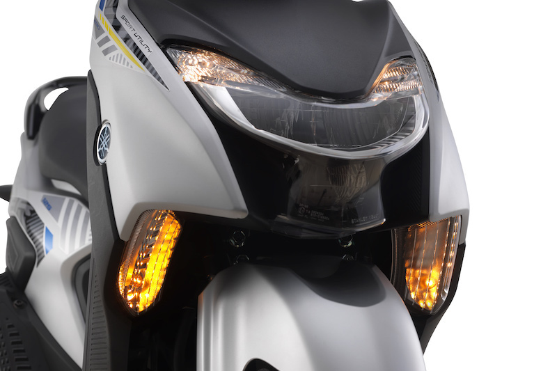 Ego Gear menampilkan lampu depan terpisah dengan lampu signal belok diposisikan lebih rendah, sebaris fork depan. Lampu utama jenis  LED, manakala lampu depan lain masih mentol. Tiada logo Yamaha diberi pada fairing depan.