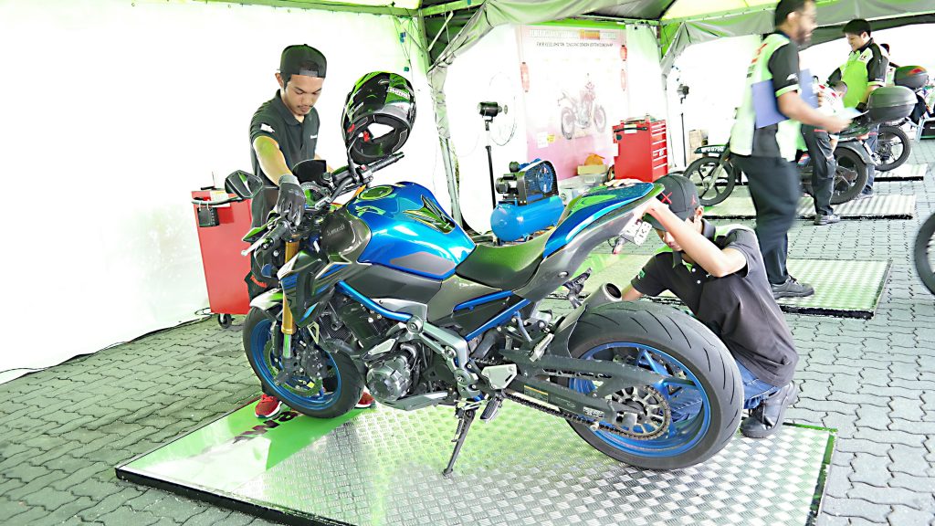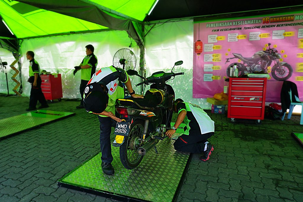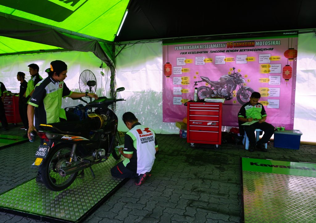 Penunggang motosikal yang melalui laluan berkenaan bolehlah singgah sebentar untuk membuat pemeriksaan motosikal merangkumi 16 bahagian. Pemeriksaan adalah terbuka kepada semua jenama dan sesaran motosikal, serta dikendalikan juruteknik terlatih daripada Pusat Perkhidmatan Eksklusif Kawasaki (Kawasaki Exclusive Service Centre – KESC).