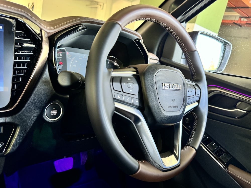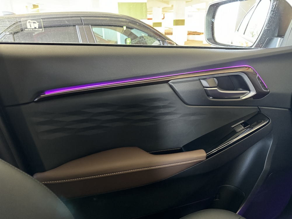 Lebih menarik, trak pikap terbaharu Isuzu dilengkapi ciri lampu aluan (Welcome Light) terbaharu untuk model edisi 2024. Sebaik saja pintu dibuka, bahagian bawah pintu akan memancarkan pencahayaan tertera teks X-Terrain dalam lima jalur cahaya putih atas permukaan jalan.