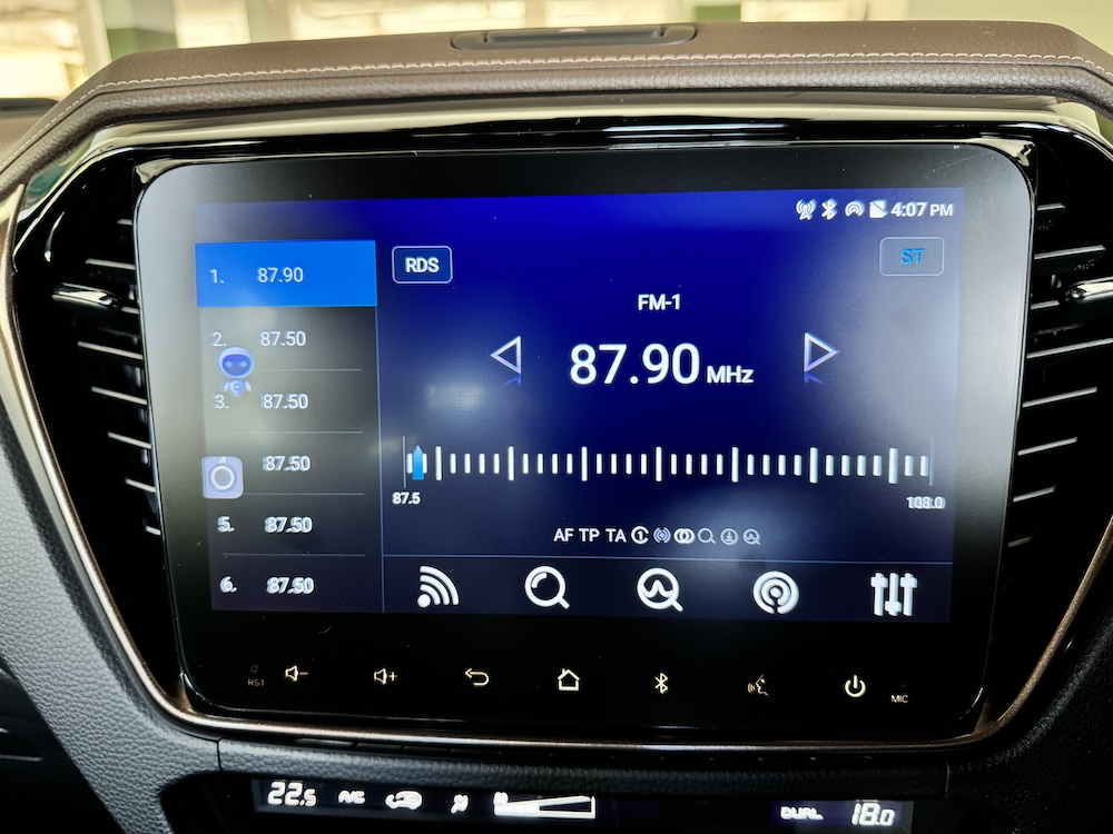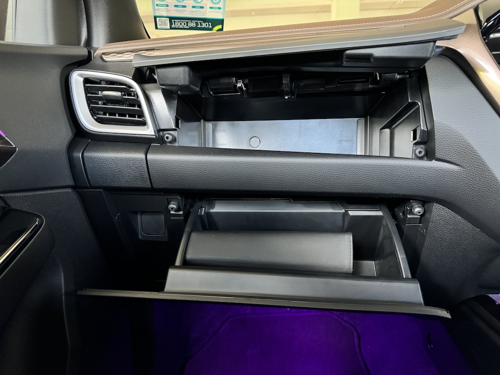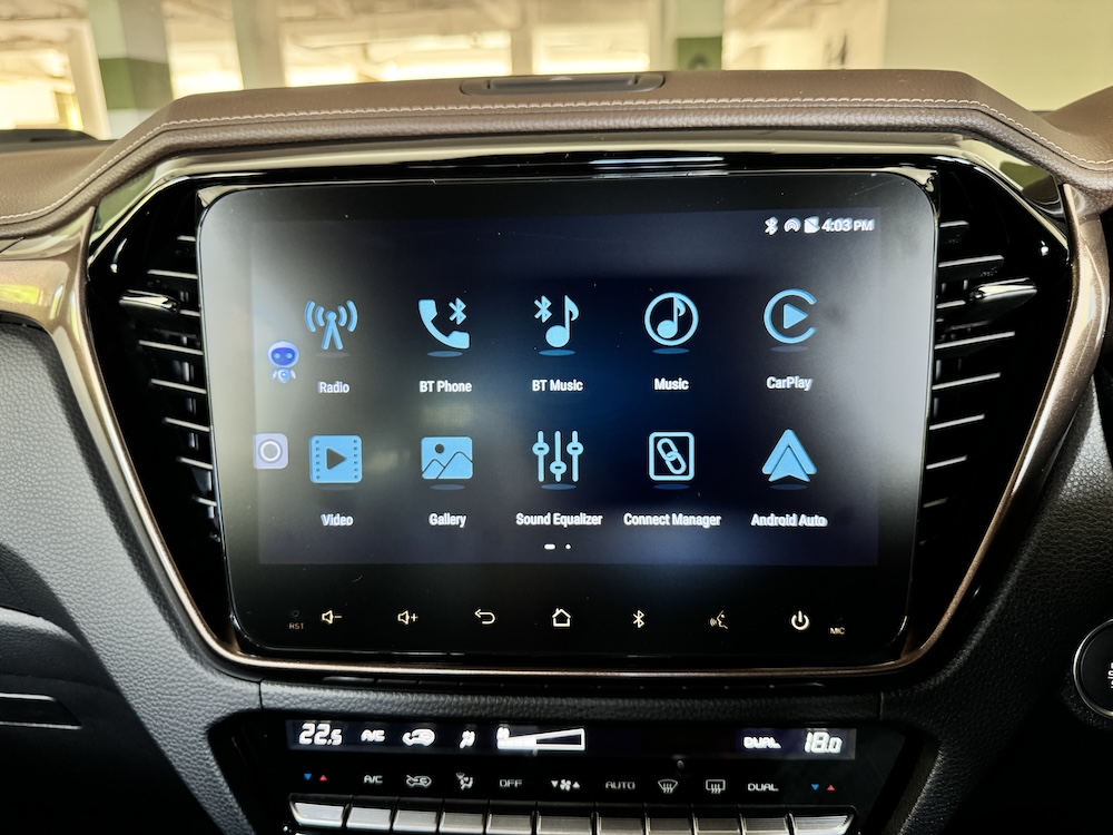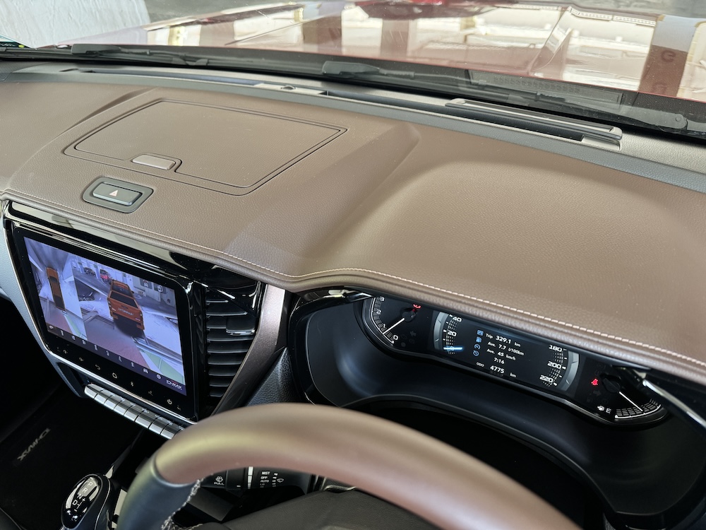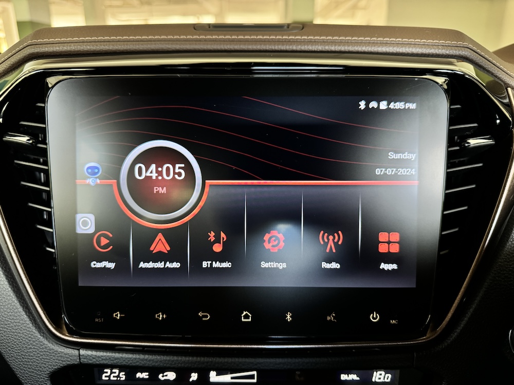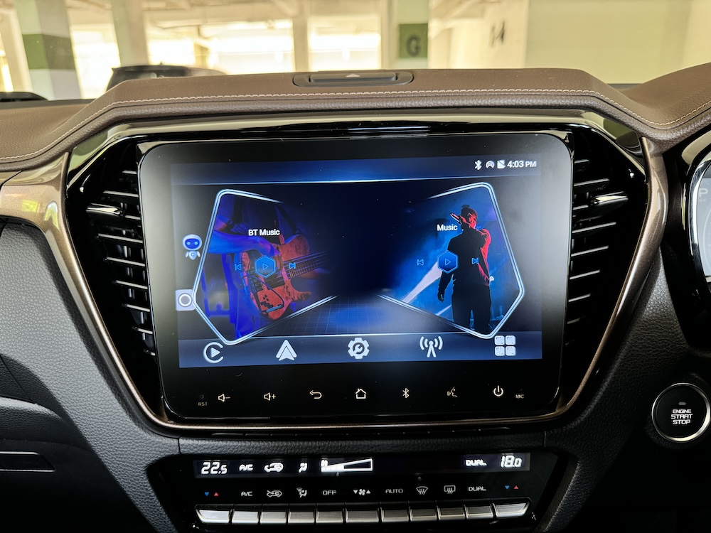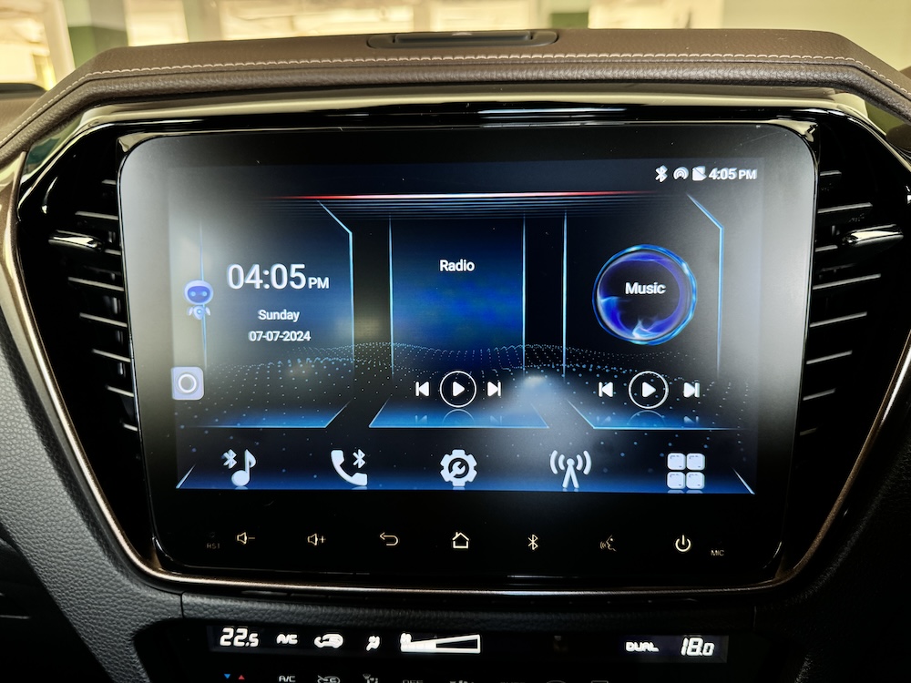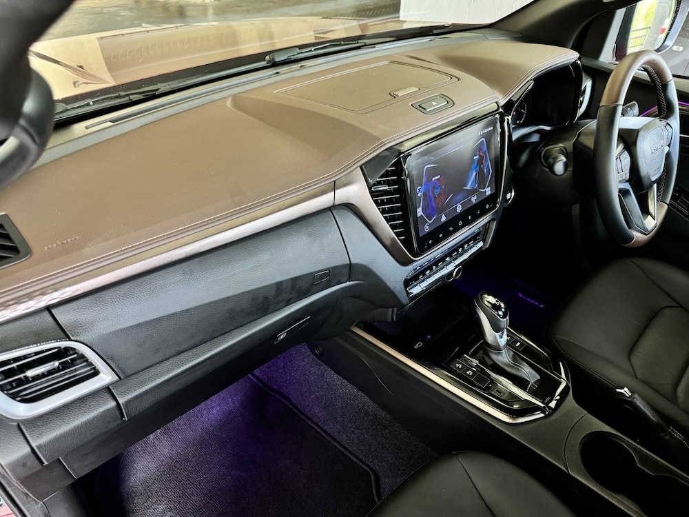 Konsol papan pemuka pula terhidang unit infotainmen skrin sentuh 10 inci yang dilengkapi konektiviti wayarles Apple CarPlay dan Android Auto. Sistem penyaman udara jenis kawalan dual-zon Automatik untuk penumpang depan.
