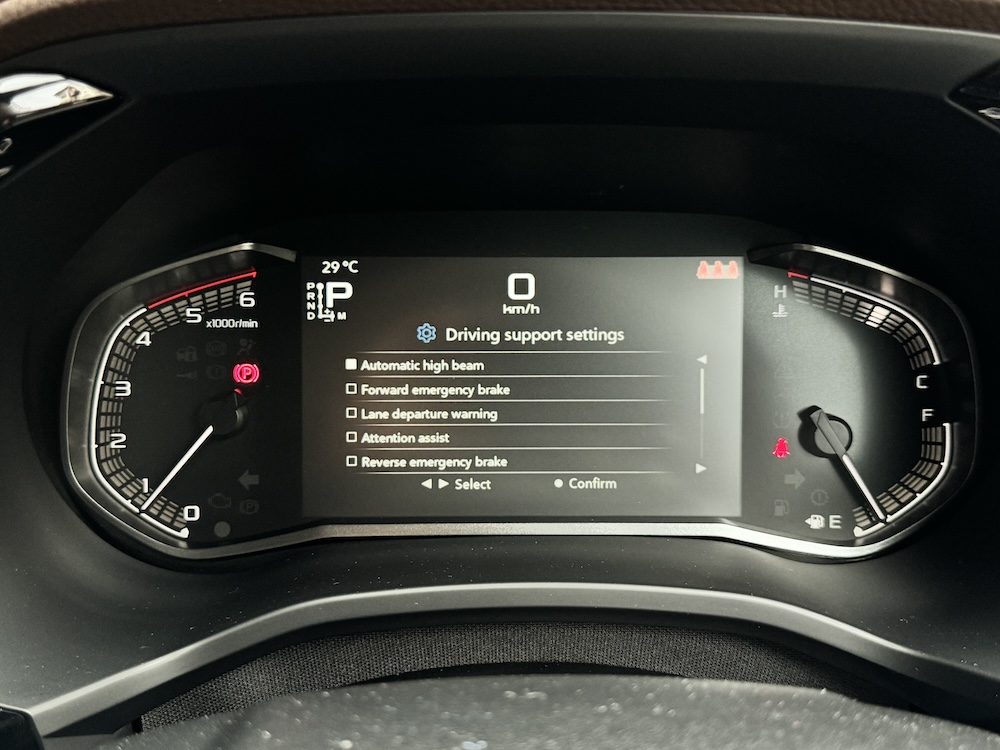 Kluster instrumen ditukar kepada jenis paparan multi-info (MID) 7 inci berwarna e-LUMAX, manakala stereng kulit jenis multifungsi dan boleh dilaras atas-bawah dan dalam-luar.