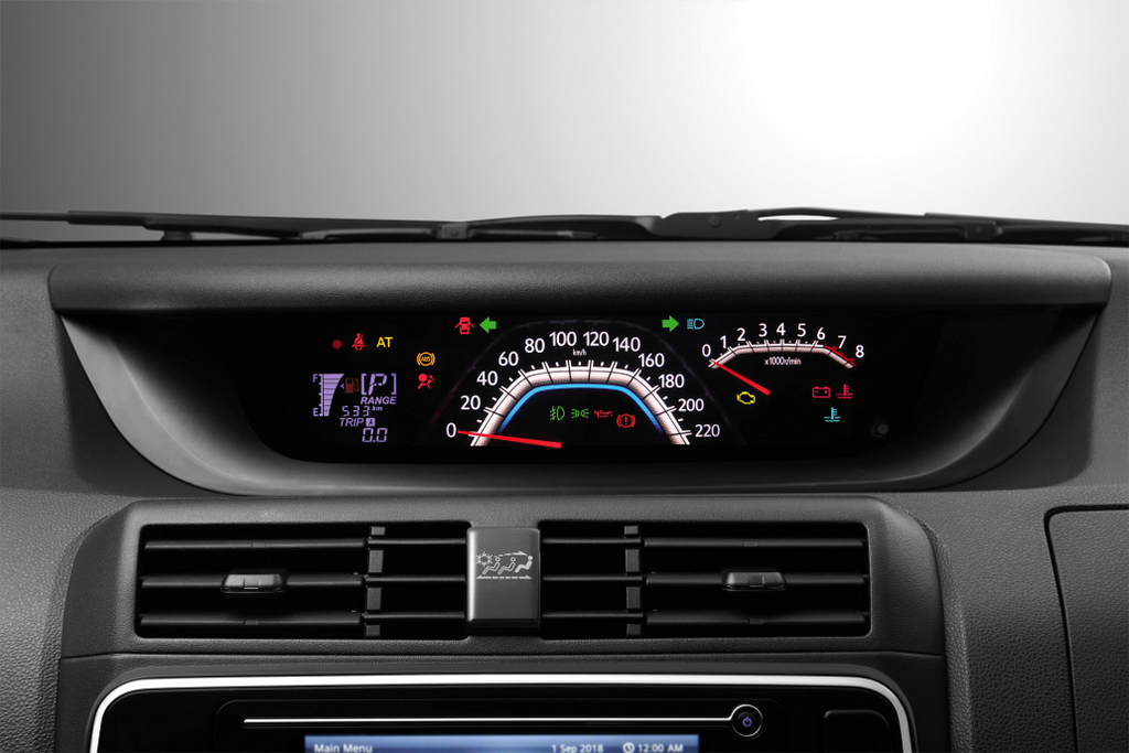 - Grafik panel instrumen dan kluster tengah direka semula.