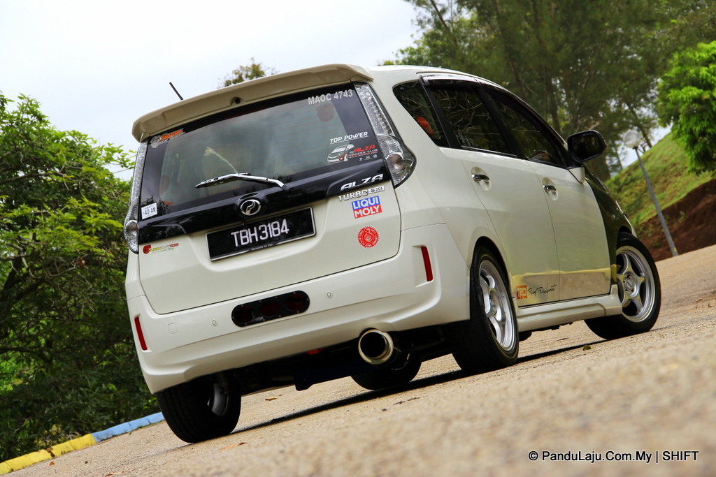 Seperti dimaklumkan, penampilan luaran Perodua Alza Turbo ini tampak biasa. Cuma beberapa penambahbaikan dilakukan seperti penggunaan rim Enkei RP01 berukuran 16-inci dan dibaluti tayar Dunlop 205/50R16.