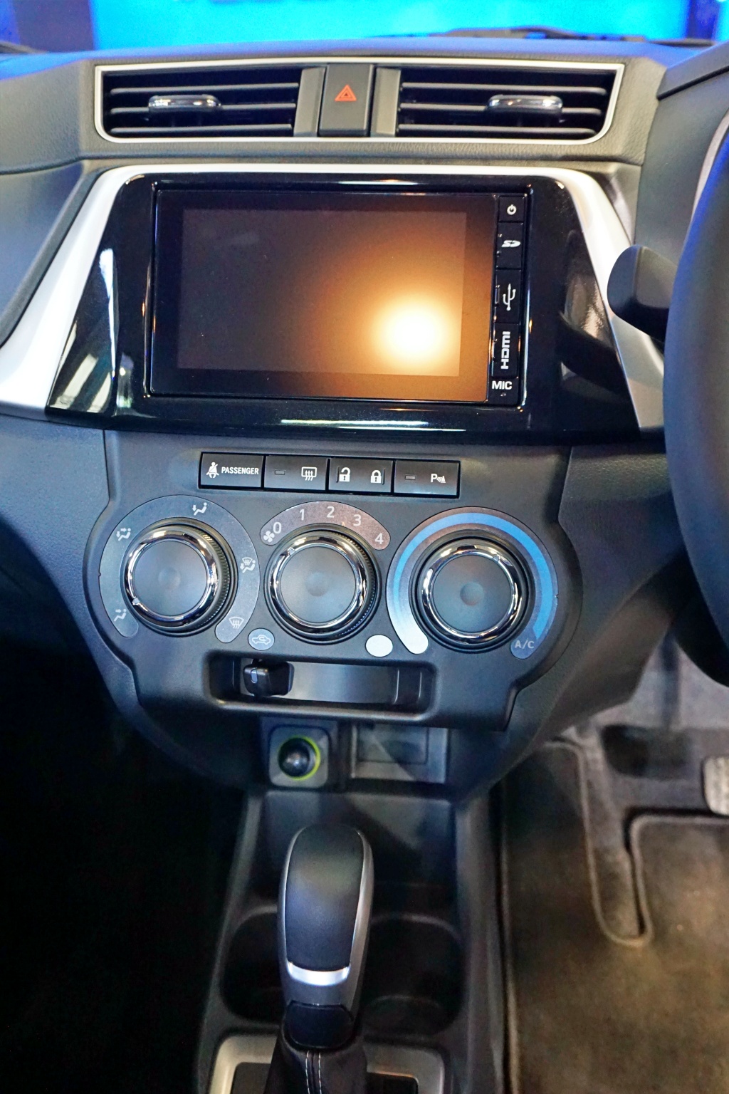 Punat audio juga diubah, tetapi susunan kluster ‘tiga beradik’ dikekalkan. Tiada lagi kemasan perak pada bingkai ventilator penyaman udara bahagian sisi kira dan kanan, kali ini dihitamkan sepenuhnya. Ini dibuat supaya nampak seimbang dengan panel perak pada papan pemuka, sekali gus membuatkan rupa kabin lebih kompak dan padat.