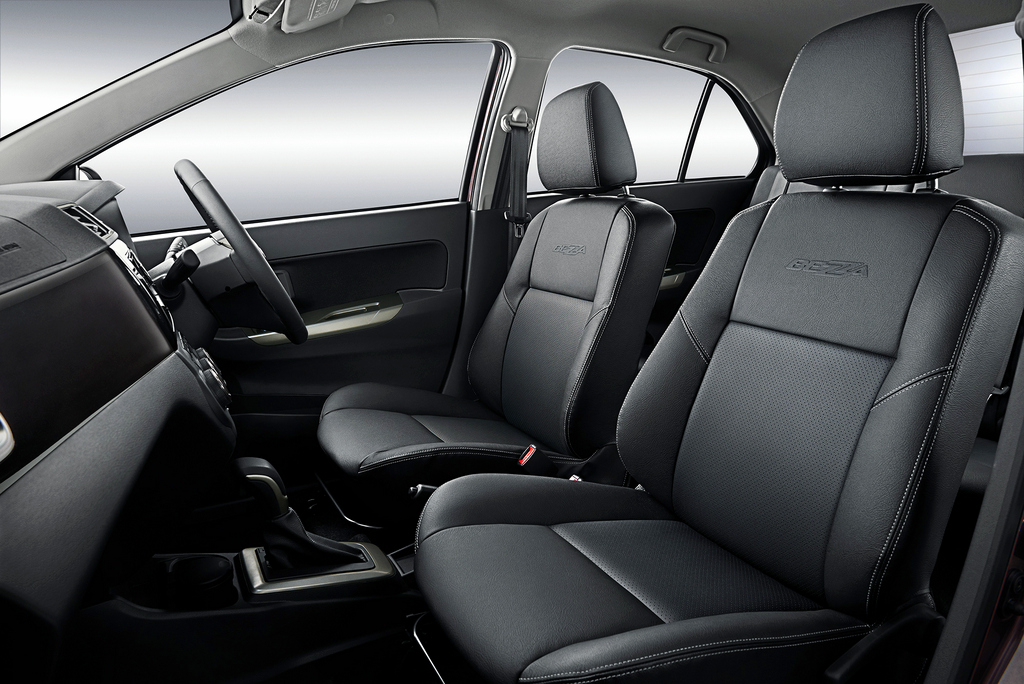 Bezza didatangkan dalam lima varian, iaitu 1.0L (MT & AT), 1.3L Premium X (MT & AT) dan 1.3L Advance Version (AT sahaja).
