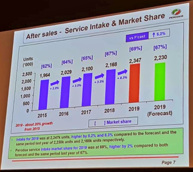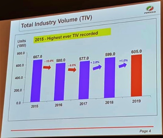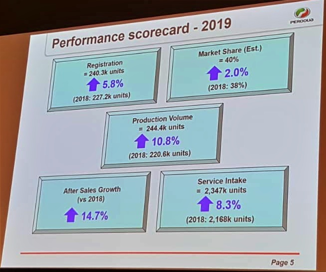 Presiden dan Ketua Pegawai Eksekutif (CEO) Perodua, Datuk Zainal Abidin Ahmad berkata, berdasarkan anggaran jumlah keseluruhan industri (TIV) 604,775 unit, Perodua menguasai hampir 40 peratus pasaran Malaysia berbanding 38 peratus pada 2018.