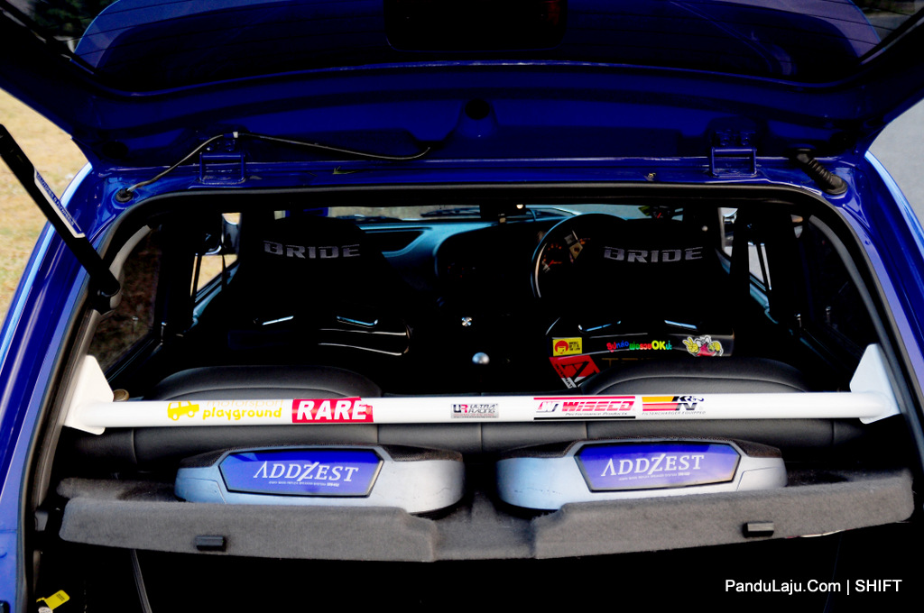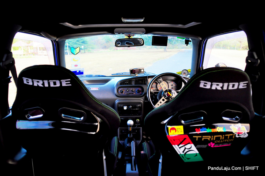 Pada bahagian dalaman, tempat duduk BRIDE Illest Low Max jenis Semi Bucket dipilih untuk keselesaan dan membuatkan pemandu berasa lebih yakin ketika memandu. Stereng dari jenama MOMO pula digunakan bagi menggantikan stereng asal.