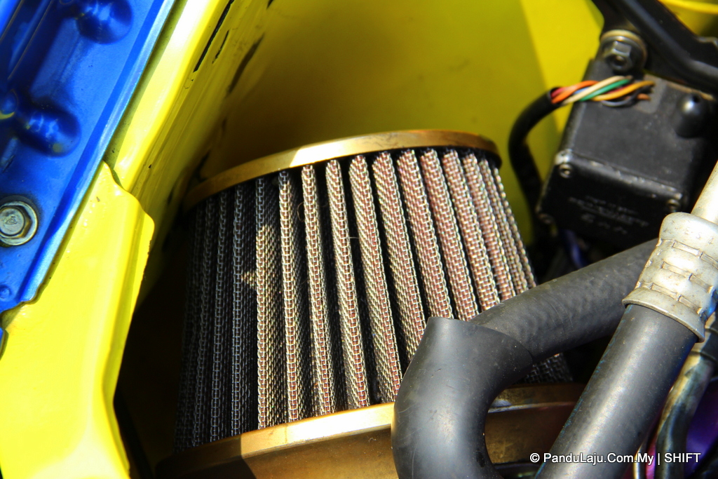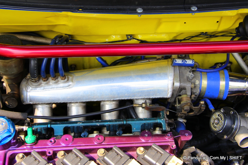 Kepala silinder asal turut digantikan dengan 3SZ 1.5L yang telah melalui proses port n polish. Udara luar pula disedut masuk melalui alat penapis udara Imamura Apexi.