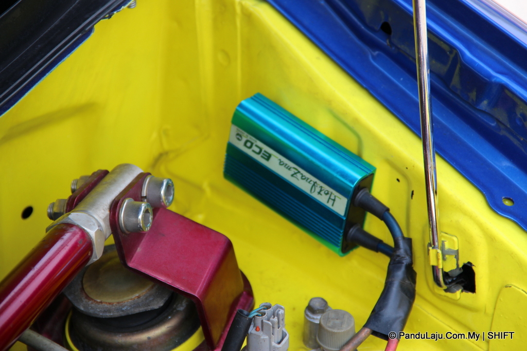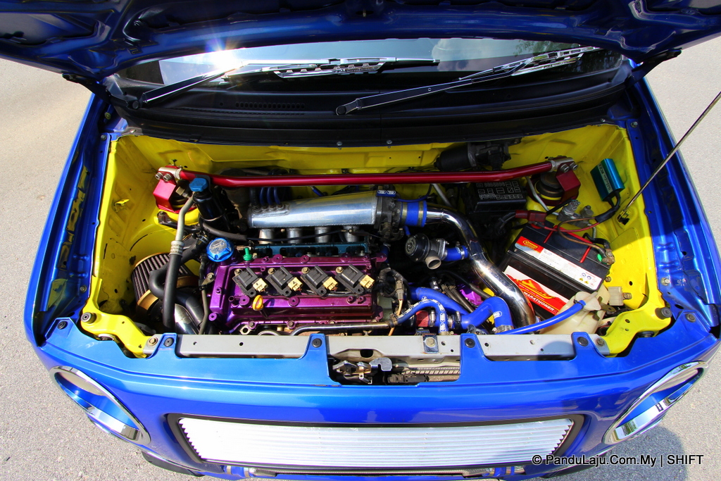 Walaupun luaran tampak biasa, tetapi anda pasti terpukau dek prestasi dihamburkan. Sebaik saja membuka bonet hadapan, enjin asal telah digantikan kepada ‘jantung’ YRV 1.3L turbo bersama kotak gear YRV Tiptronic. Tidak cukup dengan itu, ia turut menampilkan piston Wiseco pada bahagian blok.