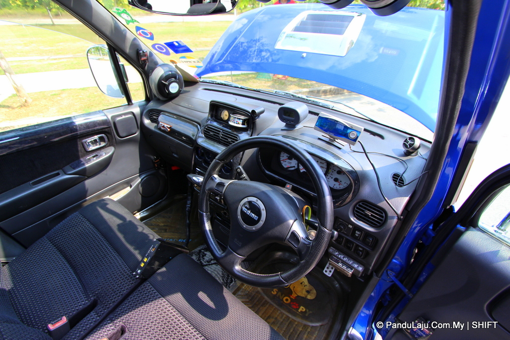 Manakala ruang dalaman pula tampak ringkas hasil padanan barangan daripada model Daihatsu Move L900 bersama beberapa aksesori tambahan hebat termasuklah set pembesar suara dari Carrozzeria.