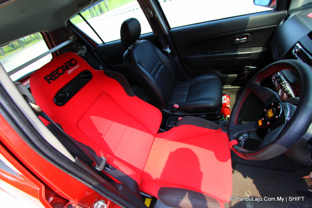 Memasuki ruang kabin, jentera ini dipadankan kerusi semi bucket. Bahagian pengendalian pula menggunakan stereng OMP dan tombol gear Teflon Works Engineering. Sesi pemanduan jadi lebih ceria dengan pemain audio Alpine dan set pembesar suara yang dinaik taraf.