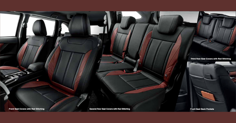 Aksesori ini menggunakan kemasa dwi-tona dengan sulaman benang merah, material PVC lembut yang tahan dan mudah dibersihkan. Juga ada ada poket simpanan.